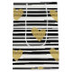 Bold black and white stripe pattern gift bag accented with luxe gold-style hearts for a chic, romantic look. A high-contrast design with a modern glam mood.