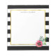 Modern floral notepad features chic black and white stripes with a pretty watercolor pansy flower and faux gold accents. Customise with a monogram, name or text of your choice!