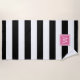 Preppy chic monogrammed beach towel in black and pink features classic wide black and white stripes, with your single initial monogram centred at the bottom in vibrant, summery candy pink.