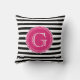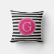 A trendy, modern, geometric, stripe pattern in black and white with a hot pink lace inspired monogram template.