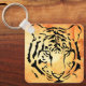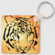 Black Striped Tiger on Fiery Orange Key Ring