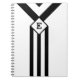 Three alternating black and white chevrons descend from the top of the geometric pattern and end at a diamond. It looks like a stylised medal hanging from a ribbon. The diamond contains a customisable monogram. Three black stripes extend from the bottom of the diamond to the base of the vertical design.