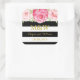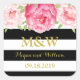 Wedding monogram favour tag stickers in black and white stripes pattern with pink watercolor flowers and gold colour text. A great way to decorate wedding favours.