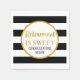 Retirement is sweet napkins with black and white stripes and gold text.