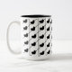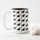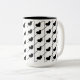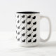 Black Stripes Hearts Two-Tone Coffee Mug. Elegant black and white pattern featuring vertical and diagonal stripes with cute black hearts.