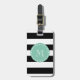 Black Stripes Pattern, Mint Green Monogram Luggage Tag