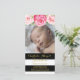 Baby Shower thank you photo cards in black and white stripes pattern with vintage pink watercolor flowers. A perfect way to thank friends and family for baby shower gifts and to share your baby photos. Available in many matching product for your shower.