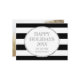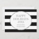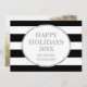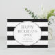 Happy Holidays Christmas family photo card in black and white stripes pattern with silver details and custom text.
