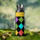 This colourful geometric diamond pattern water bottle combines retro flair with modern design, making it a bold and stylish choice for those who love vibrant, eye-catching accessories. Featuring a striking multicolor layout, it blends nostalgic charm with contemporary functionality. Ideal for school, office, gym, or as a personalised monogram gift, this water bottle is perfect for boys, girls, teens, and design-loving professionals alike. Whether you're staying hydrated on the go, gifting it to a student, or adding a pop of personality to your daily routine, this bottle makes a unique statement while offering practicality and convenience.