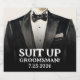Black Suit Groomsman Proposal Beer Labels Suit Up