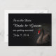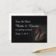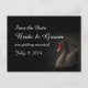 Black swan with red beak in black water save the date card. Part of the Rose Noire Collection.
