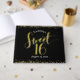 Black Sweet 16 Birthday Keepsake Real Gold Foil Guest Book