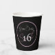 Complete your celebration with this chic modern minimalist Sweet 16 happy birthday paper cup, designed with a bold black background, elegant pink script and a classic white “16” for a clean, stylish finish.