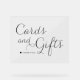 Ask guests to leave their cards and gifts with this customisable cards and gifts acrylic sign. It features black dainty calligraphy with simple typography. Personalise by adding your details. This calligraphy cards and gifts sign is perfect for any wedding theme or season. Matching items are available.