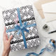 Elegant wrapping paper featuring a pattern of black stripes with polka dots and black swirls on a white background. This uniquely made wrapping paper can be used for many special occasions.