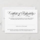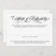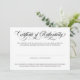 Elegant certificate of authenticity with a swirly calligraphy script and elegant fonts. Sign it by hand. Add email and website or other contact info. One sided certificate of authenticity card with elegant fonts and contact information with black fonts against a white background. Certificate of authenticity for your artwork so that your customers and patrons know the artwork they've purchased is an original.