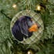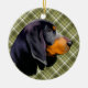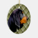 BLACK & TAN COONHOUND WITH GREEN PLAID PATTERN CERAMIC TREE DECORATION