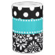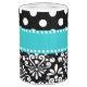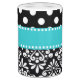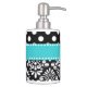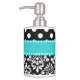 Show off your style in a fun way with this teal and black dots and chevron soap dispenser and toothbrush holder set.