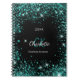 Black background, white text. Decorated with teal, sea green faux glitter dust. Personalize and add a year, first name, monogram initials and full name.