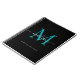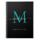 Black Teal Green Monogram Script Name Initial Notebook