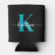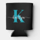 This simple, elegant black can cooler with your first name in a trendy script font in white and your first initial in a modern cap font in teal is perfect for you. It's stylish and trendy and yet very classic. Get a bunch for when you're entertaining. Guests will be able to keep their drinks nice and cold.