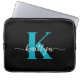 This simple, elegant black 13" laptop sleeve with your first name in a trendy script font in white and your first initial in a modern cap font in teal is perfect for you. It's stylish and trendy and yet very classic. It's unique - like you!