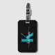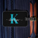 This simple, elegant black luggage tag with your first name in a trendy script font in white and your first initial in a modern cap font in teal on one side and a slide in card for your name, address and phone number on the other would look fabulous on your suitcases. It's stylish and trendy and yet very classic.