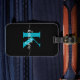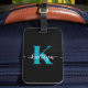 This simple, elegant black luggage tag with your first name in a trendy script font in white and your first initial in a modern cap font in teal on one side and a slide in card for your name, address and phone number on the other would look fabulous on your suitcases. It's stylish and trendy and yet very classic.