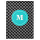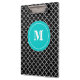 Show off your style in a fun way with this black and teal quatrefoil modern and trendy personalised clipboard.