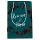Black Teal Rose Gothic Elegant Wedding Medium Gift Bag