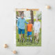 Double sided photo adoption announcement with finally officially ours written across a photo in a black font. Add the information about the adoption to the back beneath a second photo of your and your child.