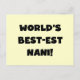 Black Text World's Best-est Nani T-shirts and Gift Postcard