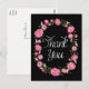 Black Thank You Pink Peony Floral Wreath Postcard