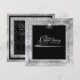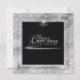 A Love Story Never Ends Black Tie Wedding Theme. Sparkling diamond look with white satin frames "A Love Story Never Ends" typography. Invitation set on a black diamond velvet look background with satin frame.