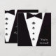 Black tie square event invitation with tuxedo background. Easily add your own event, openings or holiday party details to this square invitation. Perfect for grand openings, recitals, black tie affairs, cocktail parties, plays, concert invitations and more.