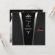 The front features a sophisticated tuxedo graphic, complete with a detailed four-pocket jacket, including a breast pocket and lower front pockets, giving a luxurious black-tie feel. A destination title and date placeholder are included for easy customisation, all framed with fleur-de-lis accents.