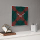 Black to red balls or holes over green background square wall clock