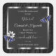 Make a lasting impression with this elegant and modern product label design featuring a black coloured natural tree bark and wood grain with a pretty silver frame and cute blue butterflies.