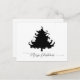 Black Christmas tree postcard greeting. Black and white, minimalist design. "Merry Christmas" greeting on the front, with a message template on the back. You may change the greeting, but the glyphs (long lines at the beginning and end) will be gone. A simple, and affordable way to reach out to friends and family at the holidays.