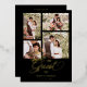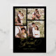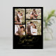 Black Trendy Collage 4 Photos Fancy Script Wedding Metallic Foil Invitation Card with Envelope.