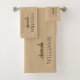 Black Trendy Elegant First Last Name | Tan Brown Bath Towel Set