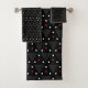 Modern abstract pattern of black triangles paired with red and white dots against a dark grey background. This contemporary design is a subtle nod to triangle UFOs, inviting curiosity from those familiar with ufology. Whether you're a UFO enthusiast or a lover of modern design, this bath towel set adds a unique touch to your bathroom decor. The minimalist aesthetic complements various styles while quietly celebrating the unexplained. Edit to change the background to any colour you wish. ♡ Idyllfire