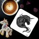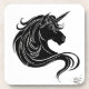 A profile of a black tribal unicorn ink drawing in a backdrop of white