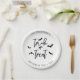 Celebrate Halloween in style with these festive paper plates featuring the phrase Trick or Treat in sleek black script typography. Bat silhouettes add a playful touch and the top and bottom personalizable text areas let you add any family name or custom message, such as Halloween Party 20YY. Perfect for Halloween gatherings, parties or seasonal entertaining, these minimalist yet festive plates make your event memorable with a modern and stylish look.