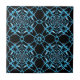 Seamless decorative geometric pattern featuring geometric shapes in turquoise on a black background.