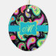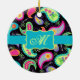 You will enjoy this bold splash of colour with this ornament featuring a whimsy paisley design that is personalised with your monogram, initials or name. The bold colours of this trendy paisley design pops on a black background background with a turquoise teal blue emblem for personalisation. Bright, fresh, modern paisleys make a beautiful artistic design that includes inspirational words of Love, Hope, Faith, Inspire, Cherish, Be Happy, Dream, and Live in the background between the paisleys. This Mod Paisley collection, designed by Phyllis Dobbs, uses the colours of teal, turquoise, lime green, wine, yellow, fuchsia and orange to create a fun and whimsey take on the traditional and popular paisley motif. The paisley motif is timeless in appeal but this original art is both trendy and contemporary. Fully customisable for personalisation with your own words to add your own message.