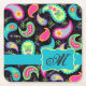 Black Turquoise Monogram Personalised Mod Paisley Square Paper Coaster