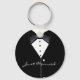 A black tuxedo with a black shaded bowtie and a white dress shirt. Says 'just married' this saying can be changed if so desired.