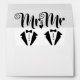 Black and white tuxedo Mr and Mr two grooms gay wedding white envelope. This elegant white wedding envelope is designed for a Mr & Mr gay wedding, featuring a sophisticated black and white theme. Inside the envelope, a charming illustration shows the upper parts of two gentlemen's black tuxedos, complete with bow ties. Above the illustration, the celebratory words "Mr & Mr" are beautifully written in a flowing script.