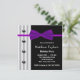 Black white tuxedo purple bow tie mens birthday party invitations.